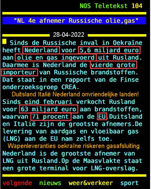 Dat geeft Rusland de mogelijkheid de NAVO lidstaten te boycotten door geen olie en gas meer te leveren.